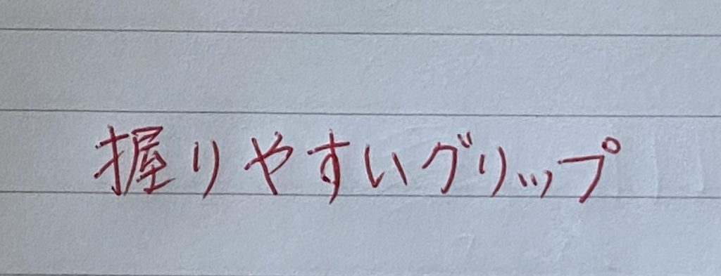 独特の形をしたグリップだが、なめらかな書き味なので、使う人とグリップの相性が合えば、とても書きやすいと思います。